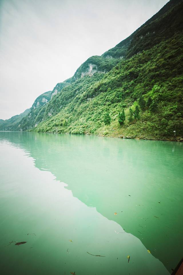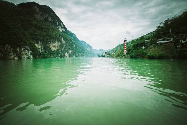 图中,深绿色就是乌江,前面的浅绿色就是阿蓬江,这里就是两条河流汇合之地。
