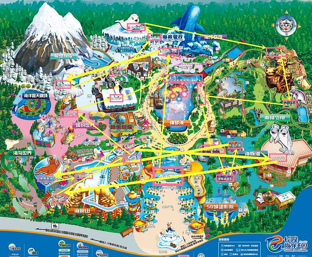 这是按照网上攻略自己画的行程图,但是一去到哪里就乱了,感觉根本就用不上。不过提前功夫做得最好的就是,前一天在官网上抄下所有表演时间在小笔记本上,然后根据去到的时间进行调配,先把所有表演都全部看一次,这些错过了可是没有的了。看完表演再慢慢走慢慢欣赏馆内的各种动物,科普知识好了。