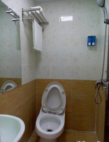 一人转身刚刚好的洗浴间。空间实在太有限了。而且窗户没有窗帘,洗澡的时候要注意点,记得用毛巾把窗遮住。