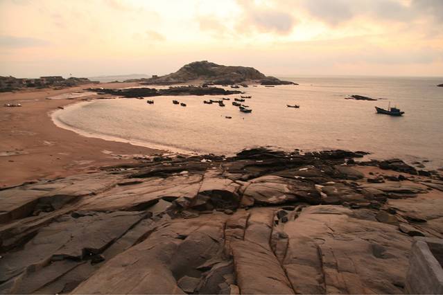南日岛座落在兴化湾,兴化湾有两颗璀璨的明珠,一个是数百年前就因妈祖闻名于世的湄洲岛,一个是至今还藏在深闺无人识的南日岛。南日岛,一个原生态的小岛,未被开垦的处女地,是莆田秀屿最大的乡镇,但还是一个经济欠发达的落后的小岛,这里的旅游业不发达,居民生活的地方很多还是脏乱差,由于采石和挖沙的破坏,岛上相当的景点遭到不同程度毁损,令人唏嘘。但是碧蓝的海水,金黄的沙滩,木麻黄缠绵着相思树,淳朴的渔民,满载的渔船,坚实的石头房子……不管你何时驾到,也不论你是何方圣贤,你还是会被她没有污染过的天然之美所打动,南日岛她总能馈赠你一处任你独享的原生态海岛风光。很多村庄的房屋离海边只有百十来米,夕阳下,整个村庄定格成一幅农家乐,金色的沙滩、满载的渔船、拉纤的男人、劳作的挑鱼人、嬉戏的孩童…… 这一定不是随便在哪里都可以看到的美景。你可以月下静观粼粼银波,看浪卷千雪惊涛拍岸,你也可以坐拥清辉任风扑面,发呆或梳理你烦乱的心事。