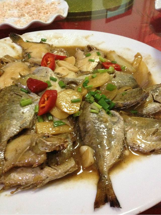 岛上只有在镇政府对面或旁边集中有一些酒家和饭店,如:山海天酒楼,亚清饭店、南海饭庄等都在一条街上, 海鲜不算贵, 小炒一份都在20至30元左右, 但鲍鱼最少95元一斤,皇帝鱼55元一斤, 猪肉贵, 红烧排骨30元,茭白炒五花肉20元。