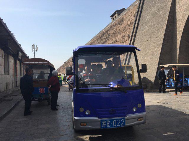 走进平遥古城,乘座着游览车,go!