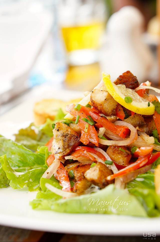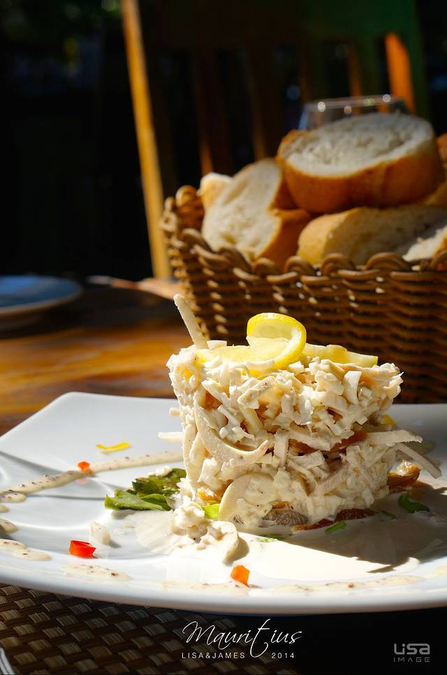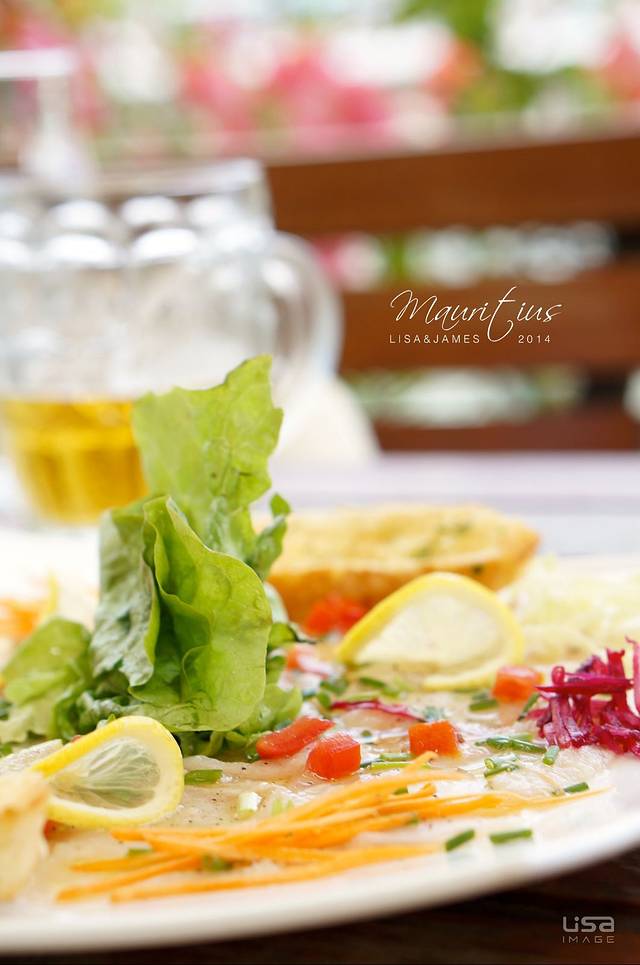 出了酒店逛啊逛的就肚子饿了,找了一家饭店进去米西米西。要了一个腌制生鱼片色拉和一瓶水,配送了黄油和面包片。色拉酸酸的,很开胃,一扫路途的疲劳~