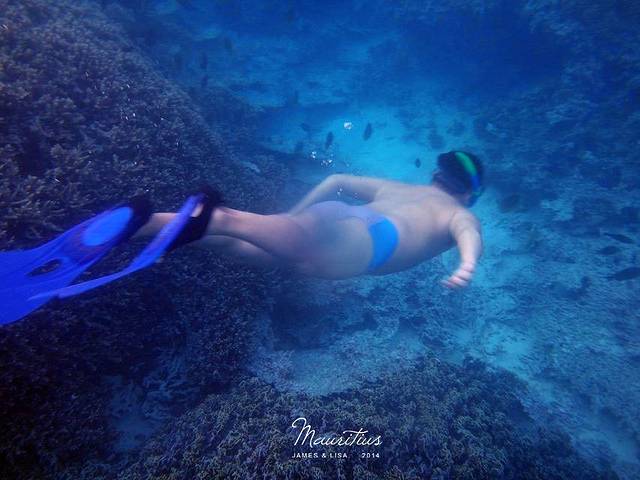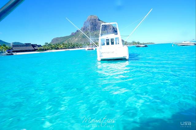 追完海豚,来到了一个岛附近,那里的水清澈透明。四周也很多快艇和双体船