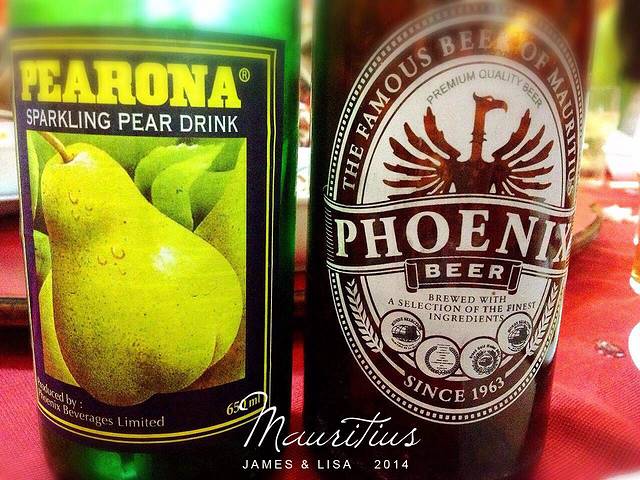 当地有名的凤凰啤酒和梨汁