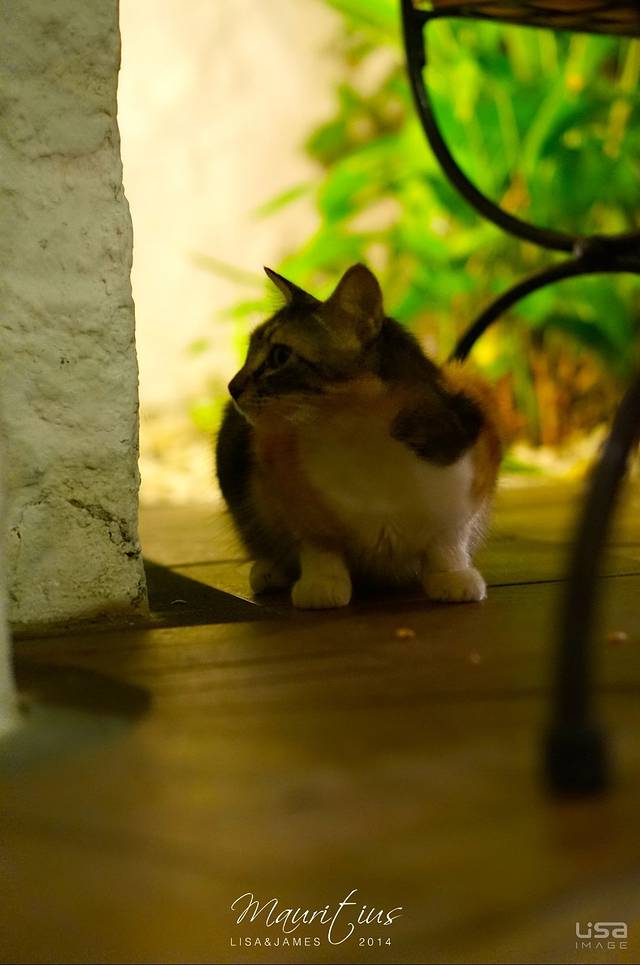 桌子下有只小猫咪,喂它花生米吃。后来吃饭的时候也跟着我们,被服务生给撵走了。。>_<