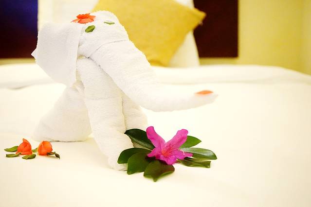 推开房门时满眼是温馨美好的小布置。绿意盎然的“欢迎”两字、新鲜的水果盘以及萌萌的大象构成了尊贵的欢迎礼,印象分妥妥地加上。