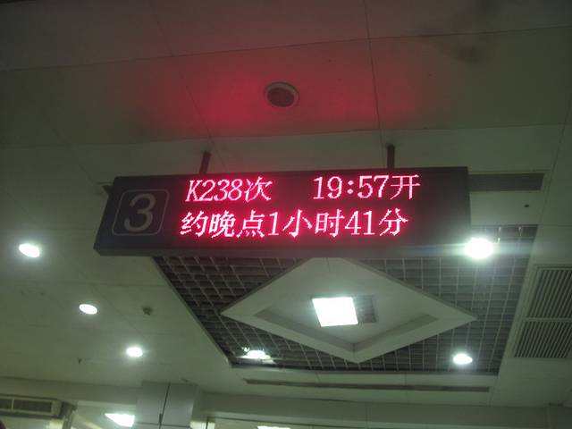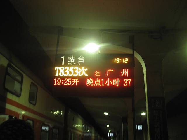 下了车步行去火车站,取了票在旁边吃了晚饭,进站,发现火车又晚点,一个多小时。还有晚点两个多小时的。回来才知道是因为前两天暴雨和有列火车在英德出故障。