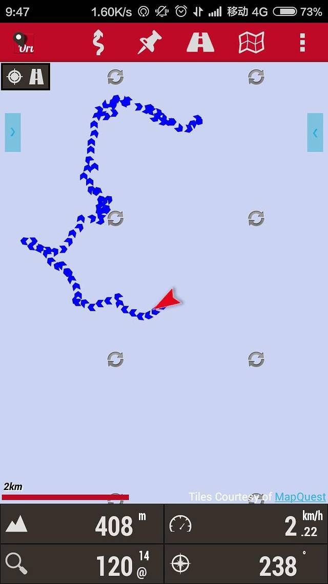 来之前我在网上下载了一位网友的徒步GPS轨迹文件,传到手机里,用OruxMaps导航,跟着这个轨迹走吧。
