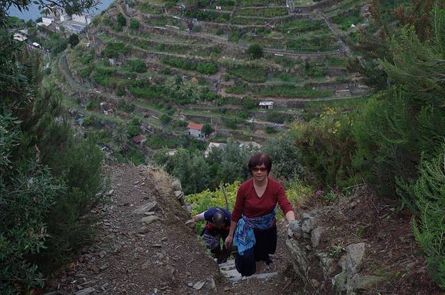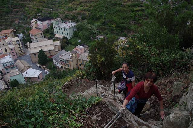 胜利就在前方。奥马焦雷Riomaggiore就在脚下了。其实如果想悠闲散步,马纳罗拉到奥马焦雷沿海只要走20分钟,我们的翻山徒步路线花了1个多小时。沿海的路在火车站下方。