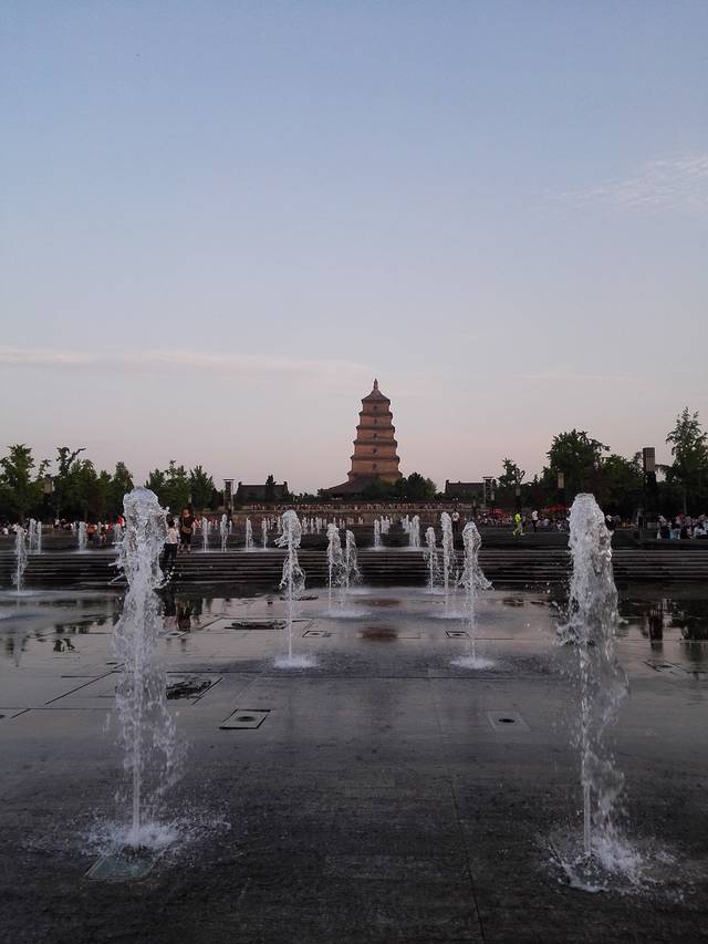 下午三点从合肥出发,大约五点到咸阳机场。乘坐机场大巴,3号线到西安宾馆下,已经是傍晚了,正好去大雁塔看喷泉表演,很壮观,漂亮。绕着大雁塔,南北广场都转了个遍,为真的到达西安兴奋不已。大约九点时去宾馆,步行大约30分钟,一路走走看看停停,两边好多高大的建筑。