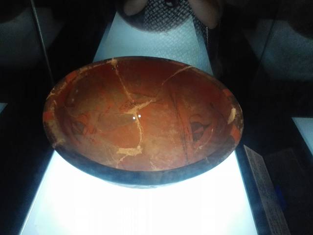 这个陶器是仿制的,真品在陕西半坡博物馆。上面有一个鱼的形状。有很多种解释,1.鱼的繁衍能力强,寄托古人多子多福的期望。2.这个是古代小孩去世后用来盖在小孩头部,希望小孩的灵魂可以与上天很好地沟通。