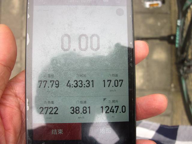 到从化了,中午一点多了,进城买点吃的。从城里出来,到去南昆山的岔路口,骑了77.8公里。