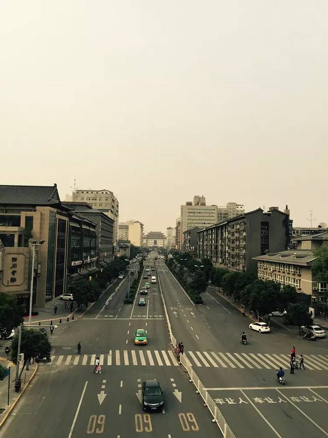 站在城墙上拍的西安的街道