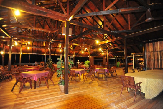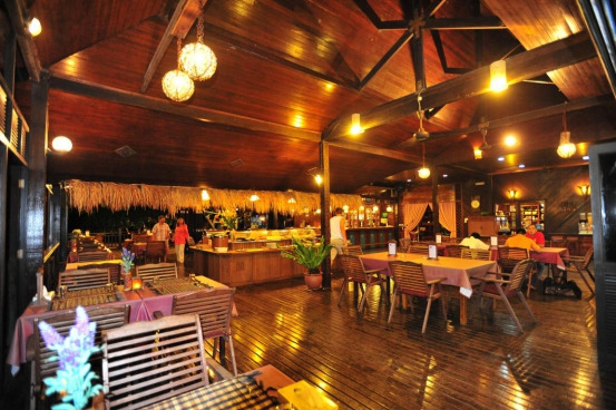 度假村的餐厅可容纳上百人,每日三餐、节日庆典都在这里进行。