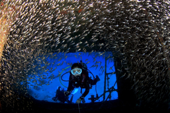 诗巴丹岛的迷人的海底世界,从浅到深可以看到形状各异的珊瑚、海葵、海绵以及由成千上万条白鱼和其他鱼组成的巨大鱼群。这个海底潜水乐园还是绿海龟和玳瑁成群结队栖息和繁殖的温床,潜水者随时可以加入规模庞大的海龟队列,在它们的带领下畅游海底世界。另外,还有一个潜水者不能错过的奇景,那就是成千上万条海鱼密集在一起形成海浪风暴。