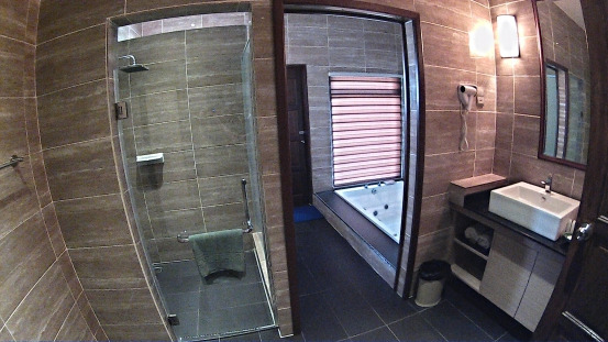 Chalet的房间舒适、漂亮,高高的天花板,让整个房间很有空间感。深色的木器家具,配上柔和的壁灯,让室内充满浪漫与温馨。浴室里的香薰味混合着空调的丝丝凉意,把室外的酷暑艳阳统统隔绝。迎着海风,阳台小憩,也是十分惬意。