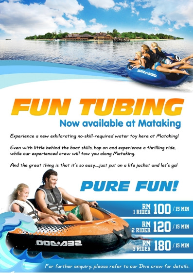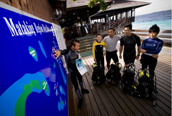 如果没有潜水证,但想体验一下潜水的乐趣,400RM就可以参加潜水中心提供的两小时“体验水肺潜水”Discover Scuba的课程。此课程由潜水中心的高级专业潜水师全程培训,由基本潜水学至入海自身体会。活动完成后,会颁发证明书于参加者。马达京还提供水下的摄像及视频制作服务(当然也可以自带水下相机),一定会留下一段美好回忆。中文教练全程教学。