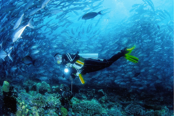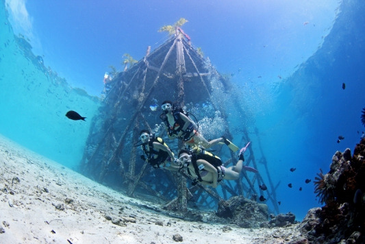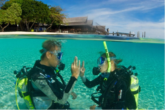 飞鱼一直倡导的是用度假的方式学习潜水,马达京就是一个非常完美的典范,在马达京这样一个漂亮完美的海岛,你可以在享受海岛假期的时候,轻松完成从OW、AOW到潜水教练、潜水长等一系列PADI潜水课程。哪怕你同行的朋友、家人不需要考证,也可以一起前往,因为他们可以选择浮潜或者其他套餐,大家一同前往、各取所乐。