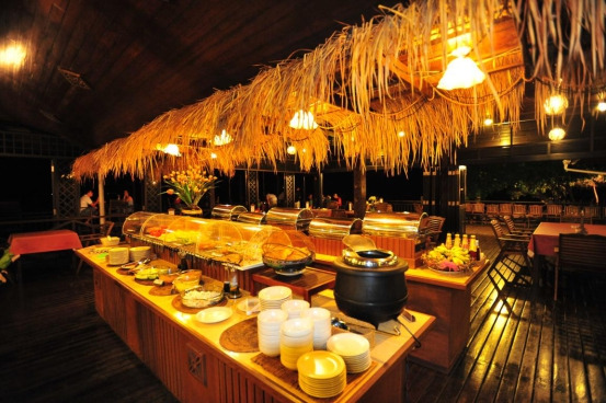 餐厅提供亚洲式与国际式的自助餐与现场烹饪,菜品非常丰富,味道一流,为了迎合大众的口味,每天都会变更菜式,有炸鱿鱼、鱼排、烤大虾、焦糖鸡蛋羹、各种沙拉、布丁、冬瓜鸡汤、蔬菜汤、罗宋汤、奶油玉米汤等各式菜品,因为是伊斯兰教国家,所以是没有猪肉的,新鲜多类的沙拉、美味的甜品、应时水果每餐都有。