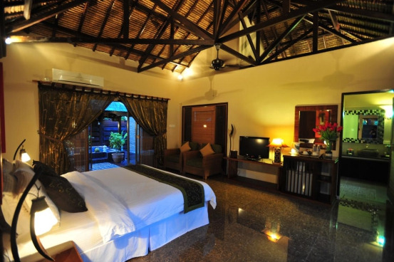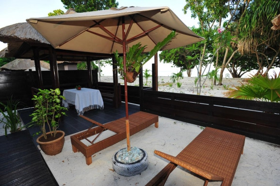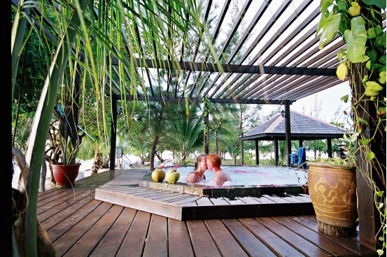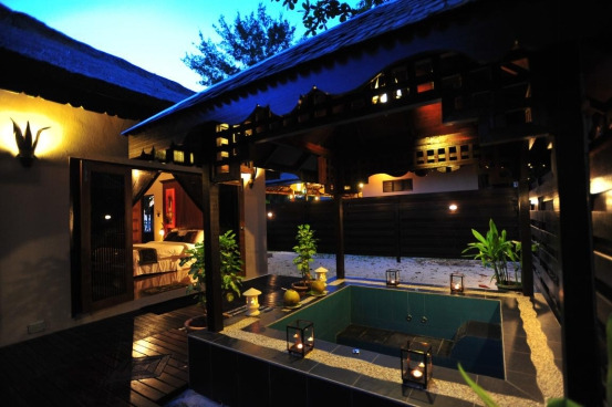沙滩别墅是最高档的单元式套房,共有5间,房间比较大,很有马来西亚特色,人工搭建的草制屋顶让房间日凉夜暖。它前有面向大海的庭院、私人太阳椅和休闲亭,后院有Jacuzzi豪华按摩浴池。屋内有空调,睡房宽敞舒适,以及奢华的浴室洗手间、衣橱、化妆室。