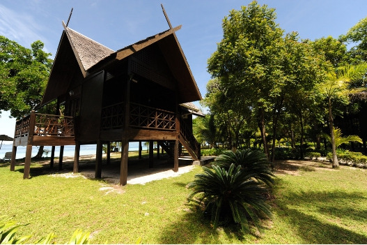 度假村的建筑是马来西亚式传统设计,房型一共有5种, 沙滩别墅(Villa Room)、新沙滩木屋(Beach Chalet)、半独立新沙滩木屋、高脚木屋(King Chalet)、豪华木屋(Garden View Deluxe),共49间房,无论是纯度假,还是潜水度假都是无与伦比的享受。