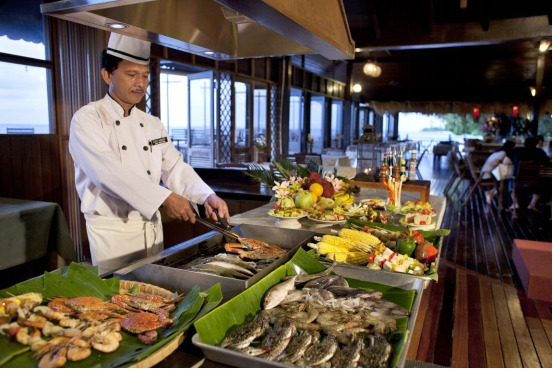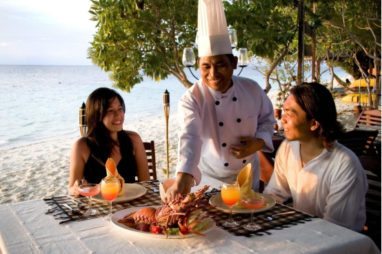 度假村现在负责mataking管理的Boss是特别从马尔代夫聘请来的,所以从服务、接待、饮食等工作全部是按照马尔代夫的标准在执行。岛上的很多工作人员都已在岛上工作了5-7年,大家都很满足现在的工作和待遇,所以幸福指数很高,你能够感受到他们发自内心的喜悦,以及真诚的为你服务。