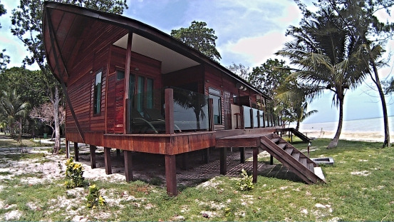 Chalet,是大马传统样式的高脚木屋。正对着海滩,每栋的间隔距离都很大,由树木作为隔断,私密性很好,比较受欢迎的蜜月房型。