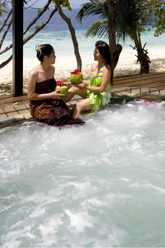 与按摩院相邻的是一个海水按摩池SeaView Jaccuzi,是一个可以容纳十人的天然海水按摩池。海水是来自马达京海域的纯净海水,并加温使用,即使夜间泡池也不会感觉寒冷。