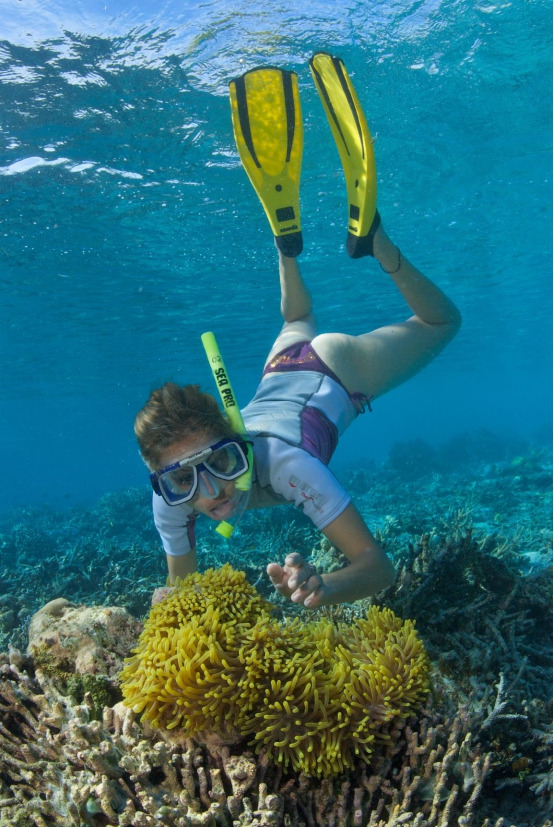 马达京本岛的浮潜环境非常棒,一入海,仿佛进入了一个超大的水族箱,各种鱼群穿梭于身边,形态各异的珊瑚,超大岁的海龟,当然还有迪斯尼动画片里的Nemo,五彩斑斓的海底世界任谁都会激动一把。马达京最好的浮潜时段有两次,上午9-11点,下午3-5点,这两个时段海底的洋流更加平缓和稳定,对于浮潜更安全。