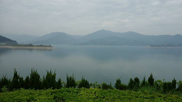 屈原故里,江水清澈,远处的山峰就像一幅水墨画。