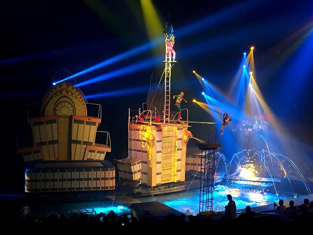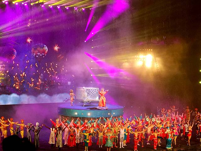 大马戏每天的时间都会有所调整,因为是三月三,大部份的旅客都来自广西,真是广西三月三助广东经济呀,非常幸运,一波三折,在一路加速顺利来到大马戏,本来是19:30分的开场时间,退迟到了8点,不过也没有坐满人,去得早的就可以提前进场选到中间的位置,不过也没有必要VIP位置,在D区还是在舞台的正中,炫丽缤纷动物嘉年华,😍唯美的视觉听觉冲击🤗,不愧是视觉盛宴,这门票也值了。