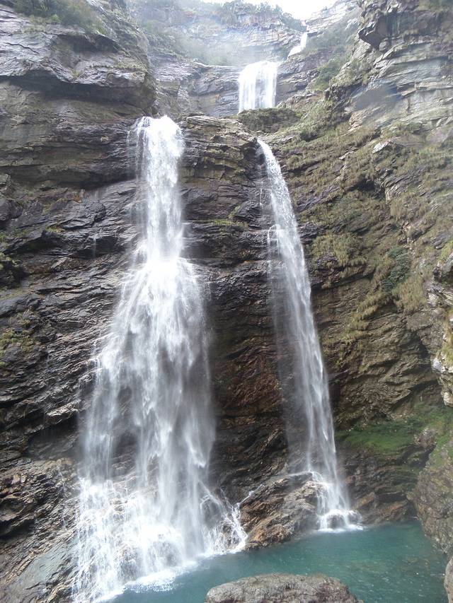 可能我走的快,台阶也就走了20来分钟的样子,就能看到三叠泉瀑布了,但还不完整,再多走10分钟,就能到观景平台。瀑布真的好美,气势恢宏的感觉,顿时觉得瀑布流下的声音都很美,空气湿度顿时加大,很舒服很舒服,氧气暴增的感觉。看到这瀑布,顿时觉得负重40L大包的辛苦和疲劳都是值得的。