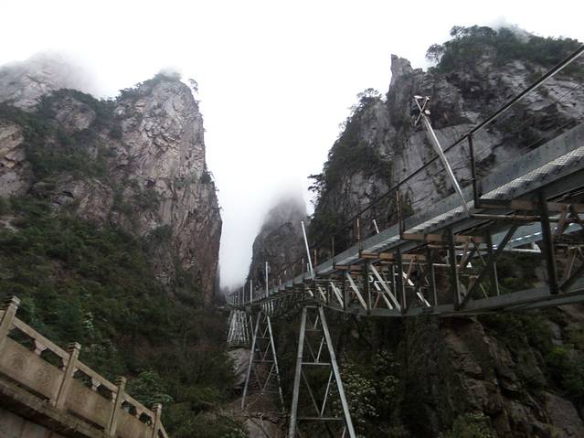 看完三叠泉接着往前走,有一个吊桥,其实挺破的,要10块一人,有点坑,看人吧,玩也可以玩一下,虽然不限时间,但一般也就玩十来分钟就走了。我们上去玩了一下。然后还有人坐那个索道下来,没有游览车厢那种。接着往前走,又有一个人工做的彩色吊桥,还有一个玻璃吊桥,为了多赚钱,傻啥都做一下,吸引我的是那个玻璃吊桥~就这样,我下个三叠泉,多花了20块。