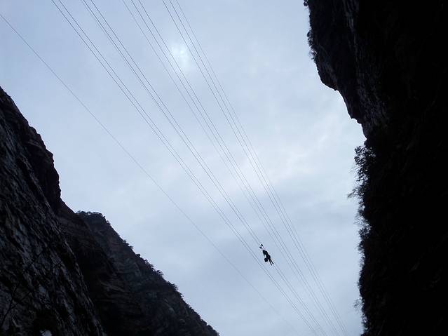 接着就走到悬索桥。原来计划到悬索桥就坐索道的,结果因为下雨索道没开,还好有人做拉客的生意,20块一个人,从悬索桥拉到电站大坝。到了大坝,额,没啥可看的,听说50年代时这大坝有东西看,现在没用,所以只是摆设。