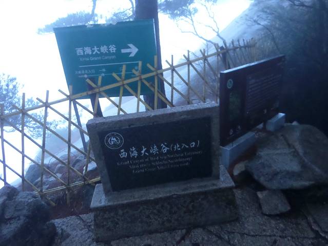 4月6日早上6点半时小伙伴联系我,问要怎么玩,我说下西海大峡谷吧。然后两个人就穿着雨衣,套着鞋套,能见度不超过五米,前往西海大峡谷的位置。去西海大峡谷,要先上光明顶,这时光明顶是啥也看不到了。然后往飞来石方向走,从排云楼入口进去。我们在排云楼附近遇到七八个人,都说西海大峡谷入口风大,栈道在悬崖上不安全,建议我们不要去。可是我这冒险心这么重的人,来都来了,不下去怎么对得起自己,觉得还是要亲自去看看。到了入口,我们觉得风力还可以接受,便继续向前,接着一路往下走发现,哎~峡谷里没有风~哈哈哈~我们站在一个悬崖观景位上,本来一片白雾,突然一阵风过来,把雾吹开,一眼看到整个西海大峡谷的美景,感受只有一个字:值!我们下到谷底也才9点钟,也就是说其实我们在西海大峡谷下行只花了一个半小时,超快的~
