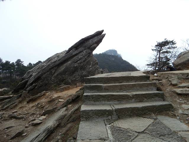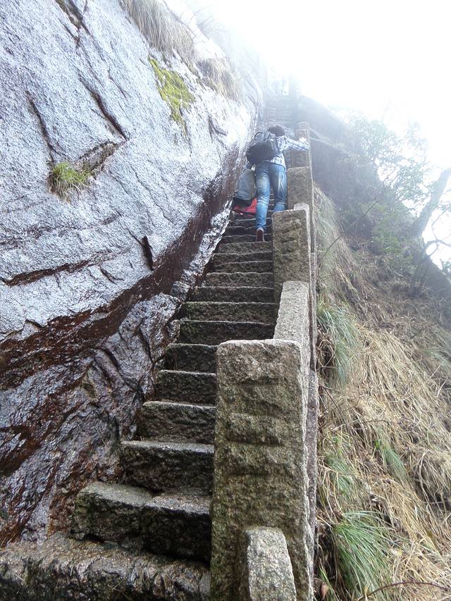 买完门票,可以刷卡啊。开始爬山了。前山确实比较陡峭,但爬上去感觉不算危险,但路遇那些从前山下来的游客,那真的是挪下来的。在此建议大家还是前山上,后山下会比较轻松,实在不行还是建议坐缆车直达迎客松。我一个人嘛,有点怕怕,在慈光阁拉了一个男生做爬山的伙伴。