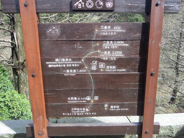 兜兜转转9点左右正式开始徒步三叠泉景区。下三叠泉前有个位置,下去还要回来,就要买返山票,不回可以直接走。按之前查看的攻略,下三叠泉最好是徒步,景色还是值得一看,事实确实如此。一路有种鸟语花香,小桥流水的感觉。还碰到一群应该是大学生,他们很活跃,还唱歌~走了30分钟不到,就到所谓的三千级很陡的台阶,实际是2609级,之前都看攻略说那台阶超陡,我感觉没有,只要不是老人小孩恐高者,就不算很陡。但有水有点滑,还是要注意安全。