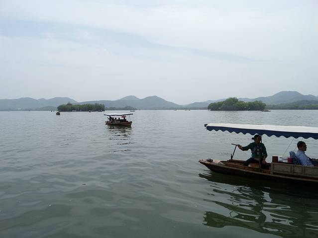 从博物馆出来,就沿着西湖走,看到一个卖船票的,就买了船票加三潭印月的门票,一共55元前往西湖中的三潭印月景点。景点其实也没有什么看的,哈哈,不过在西湖上坐坐船感觉也不错的哇。我在岛上转了一个多小时后,就坐船回岸上,沿着西湖走了一些,倒是走了几个景点,都不太好看啊,那个断桥。。。好多人人啊,真怕成断桥了。哈哈。。。
