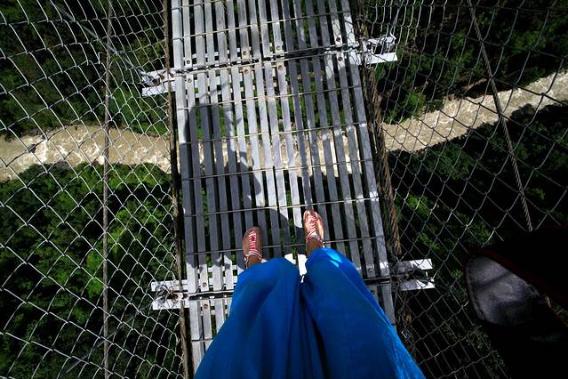 吉普车开了一会儿,司机就招呼我们下来感受这条吊桥,额,不知用意何在,也没收钱。不过倒是挺险挺刺激的