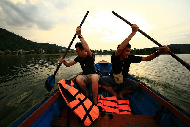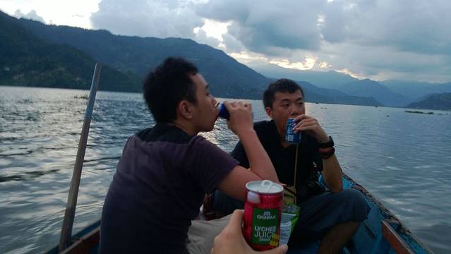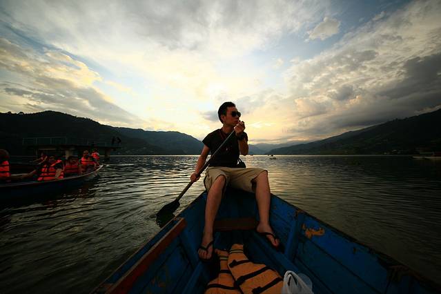在博卡拉,除了玩滑翔,还可以在费瓦湖上泛个舟什么的,刚下过雨,水葫芦都跑出来了有点扫兴
