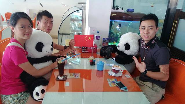 在这家咖啡店消费,可以邀请一只熊猫、老虎或者鹿来陪你喝咖啡,服务员还会帮你放上国旗..