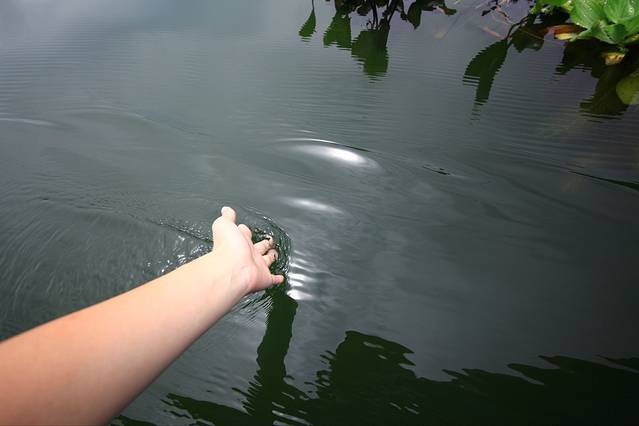 运气不好,看不到在水里的鳄鱼,只在岸边看到了一只小鳄鱼宝宝