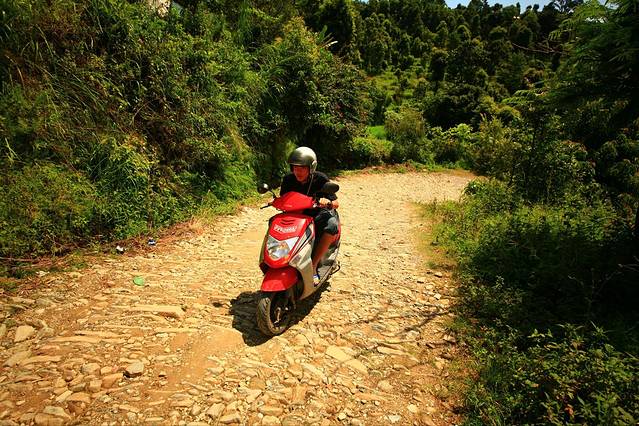 开小绵羊上山是一件很痛苦的事情,因为道路过于崎岖过于陡,两个人乘坐的话完全开不上去,大部分的路都得靠我自己走..