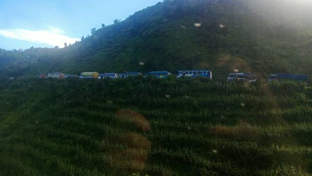 加都去奇旺各种堵,在盘山路上堵车
