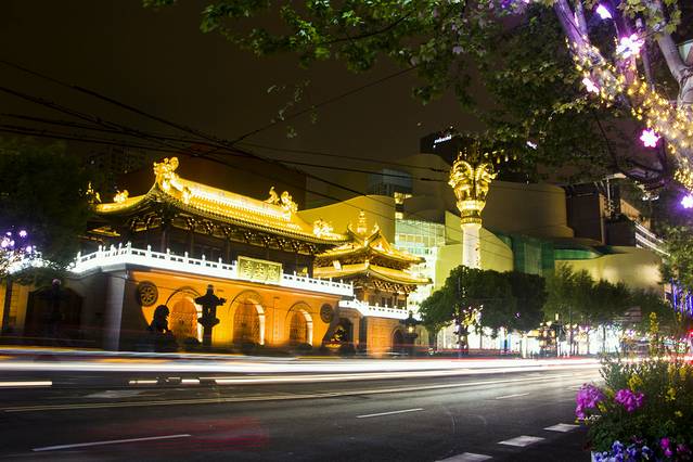 晚上的静安寺一种现代的古典美。。。(就那个意思)