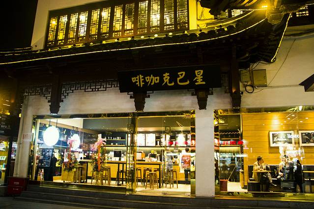 古典的牌匾加上星巴克三个字,有点中西结合的味道