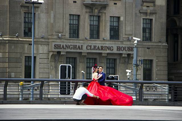 外滩拍婚纱照的真是多,几乎走几步就会看到一对,都是辣么美,真是苦了摄影师,更苦了摄影助理,各种摆造型,各种抬裙子。。。