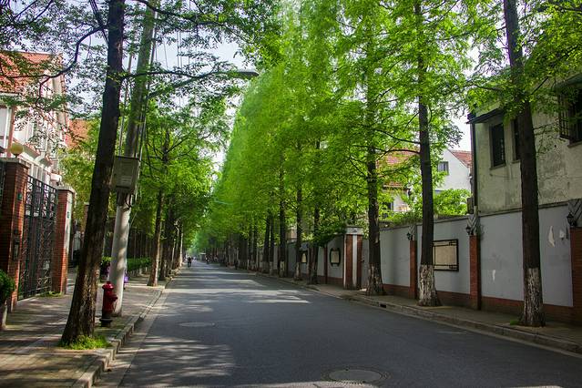 全长一千多米的武康路,路边法桐婆娑,曾是上海最有名的达官贵人们的住宅区,很多西班牙式和法国文艺复兴式风格的建筑,极具欧陆风情。