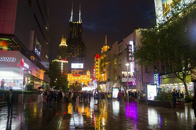 这就是我为什么想要雨天,南京路上的倒影非常明显,绚丽
